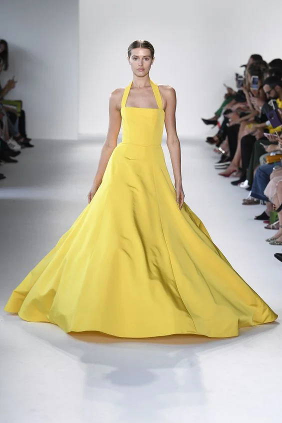 Sophisticated and timeless, Siriano takes yellow and transports it to an entirely different dimension. Who wouldn't feel like a modern day Cinderalla shooting on a star in a floor sweeping golden gown? It is what dreams are made of. The straight necklines feel a bit nineties, the fitted bodies and delicate tied shoulder straps remind me of Cher's Calvin Klein dress, and yet it all maintains a very modern sensibility thanks to the touch of unexpected proportion play. It's yellow. It's bold. It's big. And yet, it feels doable.