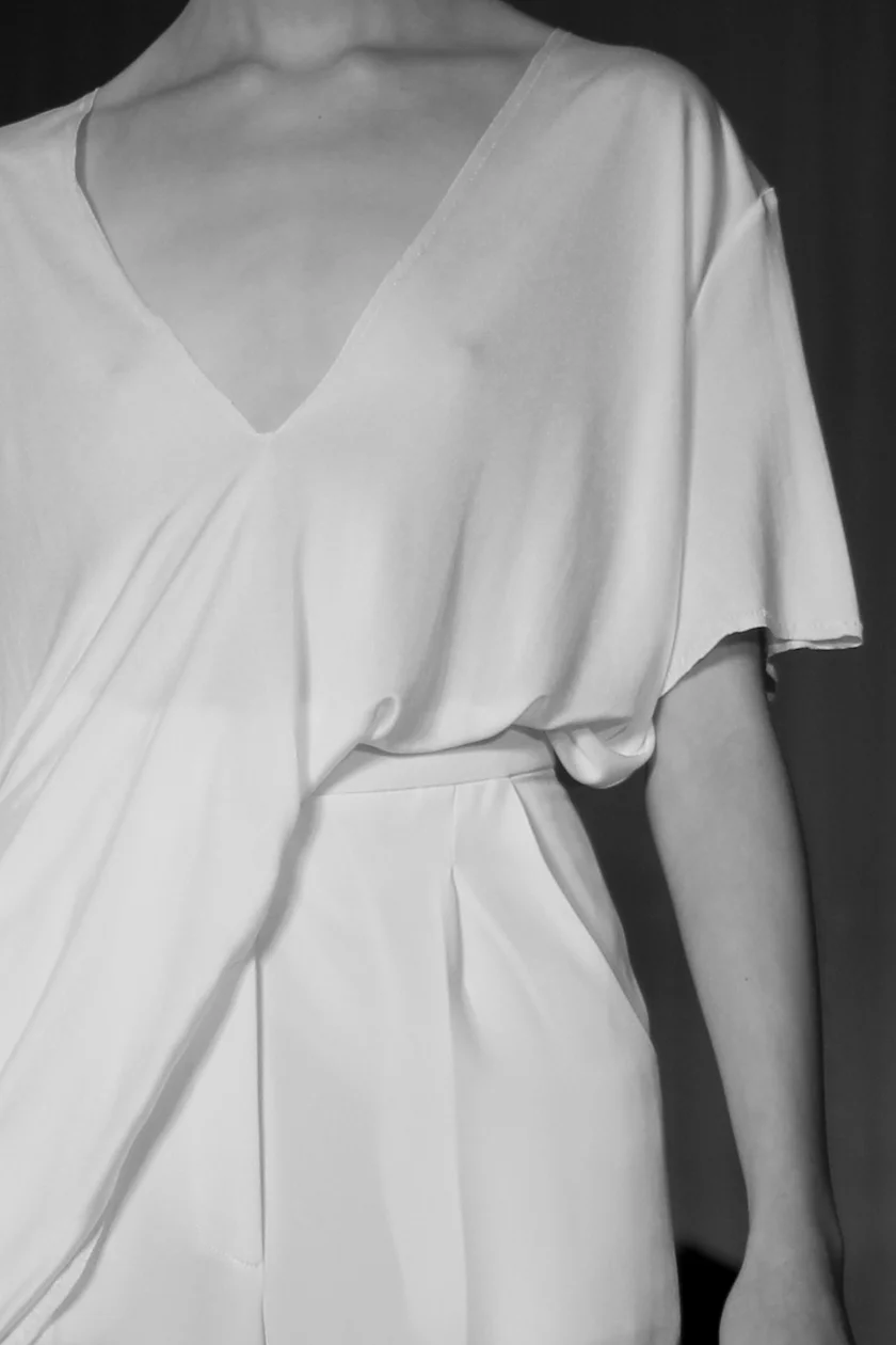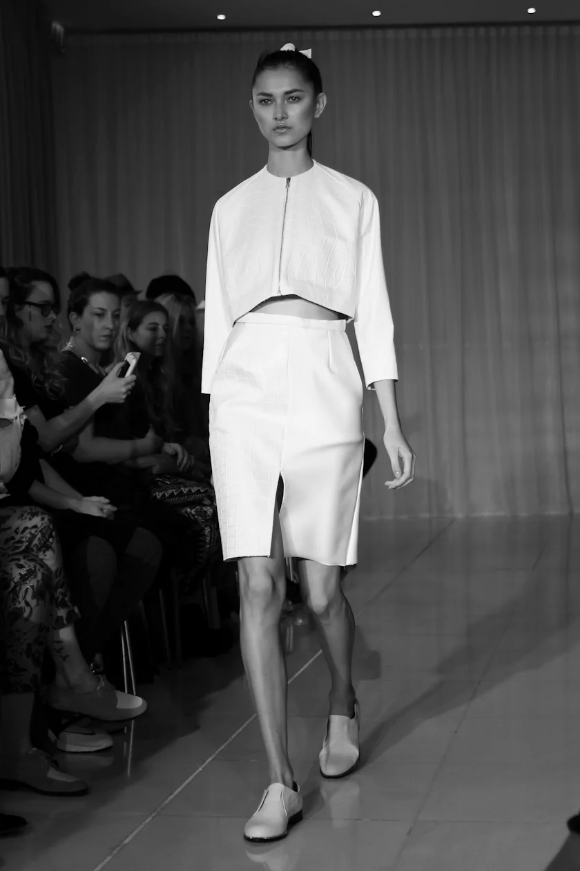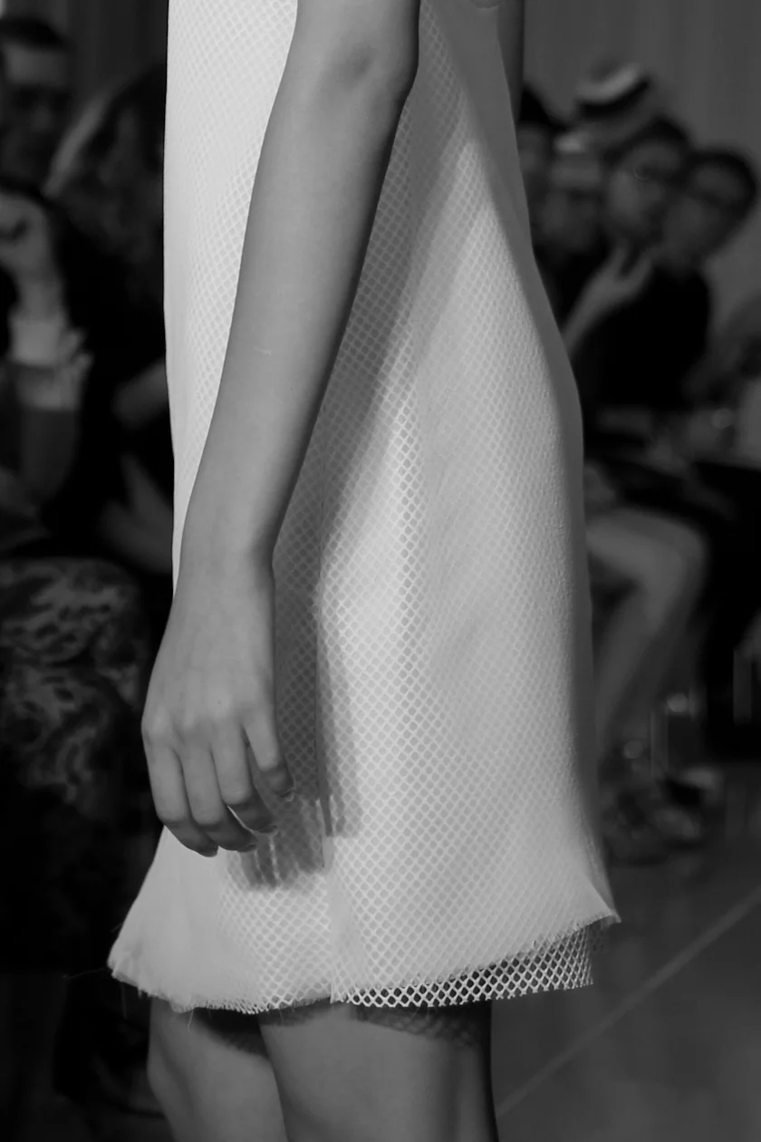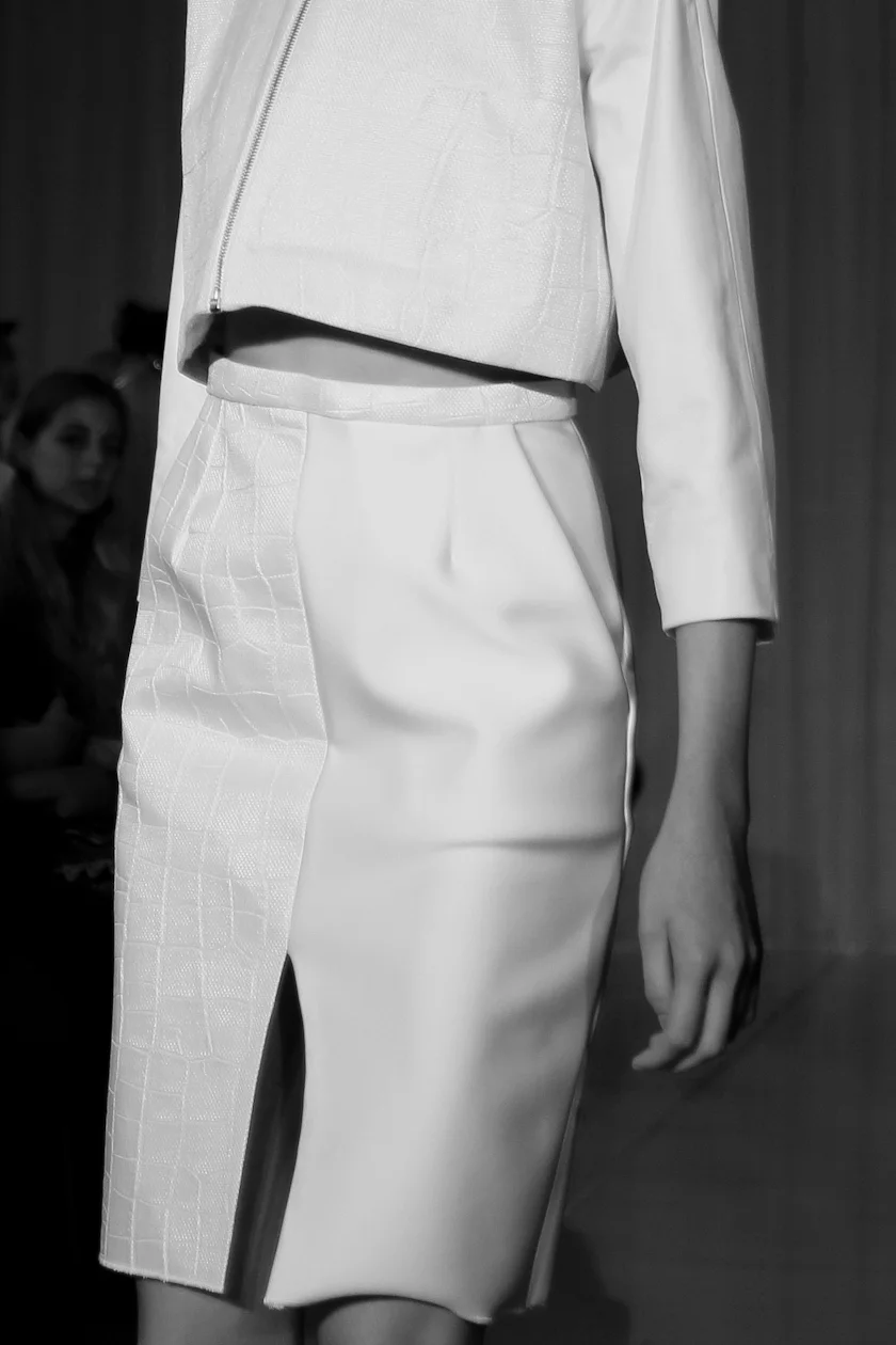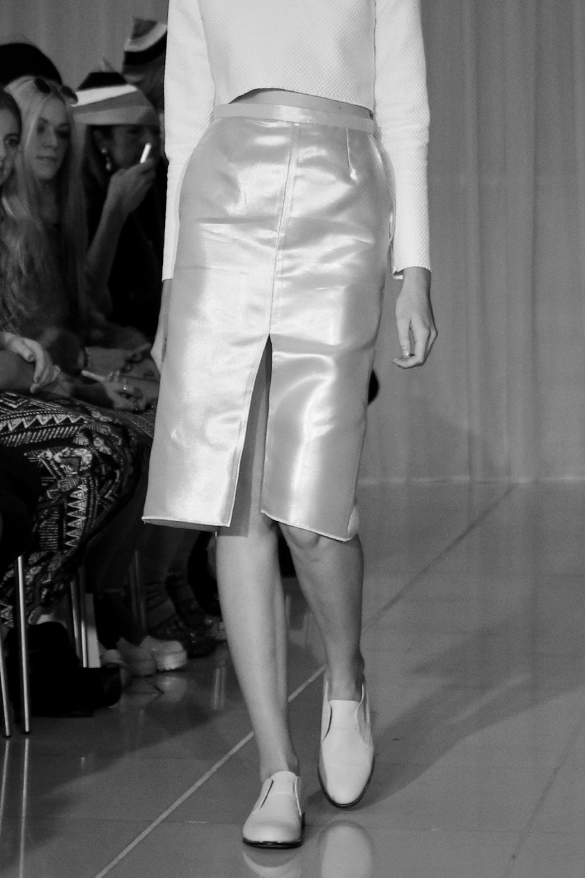 There wasn't an outfit I didn't love but my favourite part was the impossibly simple v-neck shirt that was elegantly tucked into a pair of trousers - producing the most beautiful draping. I also loved the straight skirts with front slits and the short little fitted dress that looked like a wall with cracked paint. Legs were bare and all the looks were finished with white laceless flats, made as part of a collaboration with Hudson. These babies will undoubtedly be replacing my Converse in a couple of months when they're released.