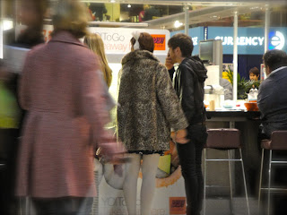 The faux-leopard coat, bow in her hair, and white tights - who wears white tights over the age of five? I really thought she looked so sweet and almost like she was supplanted into the station from some other far more glamorous life.
