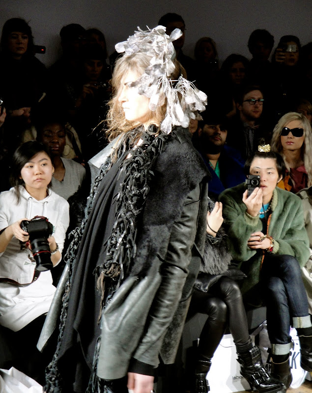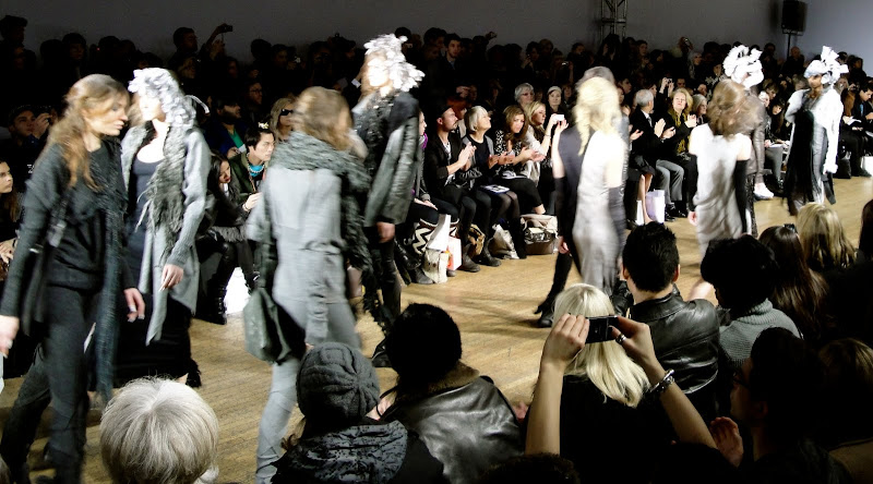 Inspired by the 'The Road' by Cormac McCarthy the collection focuses on strife and war as well as inner conflicts and social unrest. Pretty heavy stuff, but the designs (especially the digital prints) were utterly enticing and dreamlike. There was subtle detailing with a muted colour palette. Described as depicting, 'how to make do with what is left around - debris, flotsam and scraps.' Organic silk jersey is used as well as heavy crepe de chine, merino wool knit and stark leather.... all to create a sumptuous collection that absolutely transcends anything scrap-like and looks well-defined and entirely coherent. A great show.