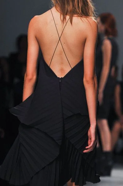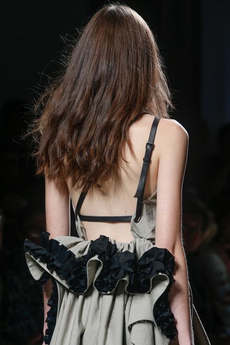 Rodebjer did bedouin inspired stripes, Prada plastered faces onto everything and Tommy Hilfiger reinvented scuba gear. At Rick Owens the very nature of a fashion show was called into question and at JW Anderson tops were tied on by strings. Exaggerated ruffles made a return at Dries van Noten and Bottega Veneta. Ugly sandals were everywhere and at Lanvin models carried bags that looked full of trash. There was monochrome in abundance, geometric prints galore and, at Celine, Phoebe shook the minimalist agenda. In many collections the focus of sex-appeal moved to the back with deep Vs and crossed straps.