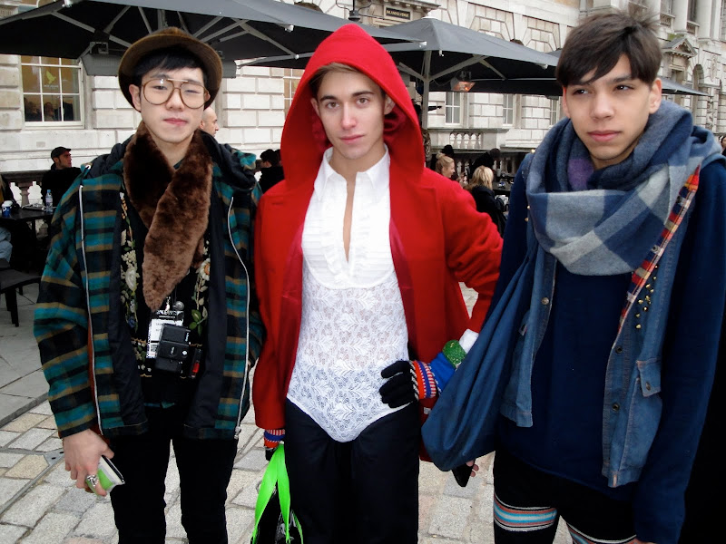 I ran into these gentleman on Tuesday... they are totally wild, as you can see. I believe they are all students (definitely the three pictured below are) and they are clearly pushing the boundaries of fashion. I wish I knew a bit more about the guy above... his motivation for dressing this way and what his story is. Does anyone know? It is quite theatrical. Does he dress this way every day? Is it for a show... I am totally intrigued. I wish I had spent the time to ask more questions. One thing I know for sure though, is that his eyes were stunning... a really piercing blue.