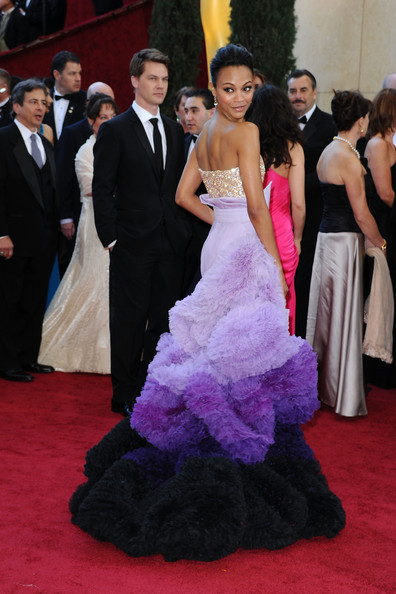 without a doubt my favourite dress from the 2010 oscars was the Givenchy 'natalie' one worn by the stunning Zoe Saldana. it has had mixed reviews - being raved about on some websites and branded onto the worst dressed list by others. worst dress? you've got to be kidding me, did you see Mariah Carey and Charlize Theron? anyway, this Givenchy number is perfect red carpet material. sure, it is a little out there - but if you can't wear it to the oscars when can you wear it? it is exactly what i would want from a dress were i going to the oscars. totally glamorous, memorable, and unlike any other. i adore the sequin bodice - saldana is literally shining in it. when she went on stage at one point it was almost blinding. even if avatar didn't snatch up best picture she radiated like a star. the colours, the shape, the insane details that flow right down to the hem are divine. if this is what being worst dressed looks like, i would gladly be cast onto that list.
