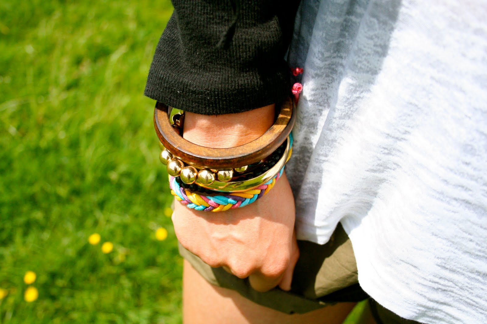 Wearing: Urban Outfitters burnout t-shirt, Madewell jacket, Gap shorts, Rayban aviators, Topshop sandals and bracelets.