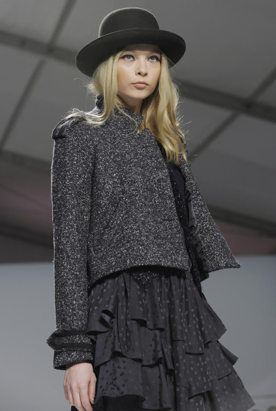 Rebecca Taylor's Fall 2010 show has given me some new things to crave... a bowler hat, liquid eyeliner, soft creams, leopard print, grey boots, sparkly tights, khaki jackets, tiered ruffles, textured croc prints and subtle embellishments. Is it possible that I am already craving next Autumn when this Spring hasn't even come yet?!