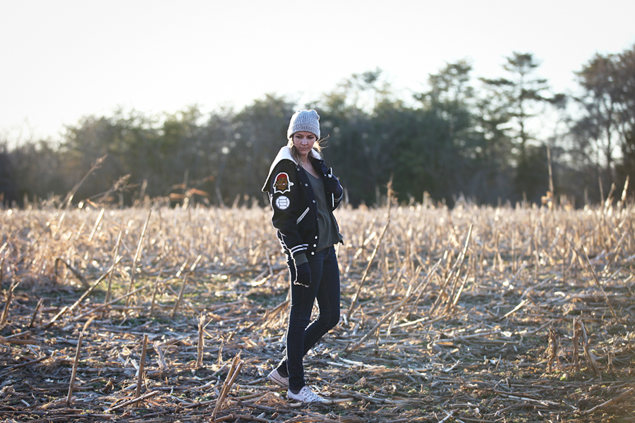Wearing: thrifted varsity jacket, Banana Republic jumper, 7 for all Mankind jeans and Converse. Photos by Stephanie.