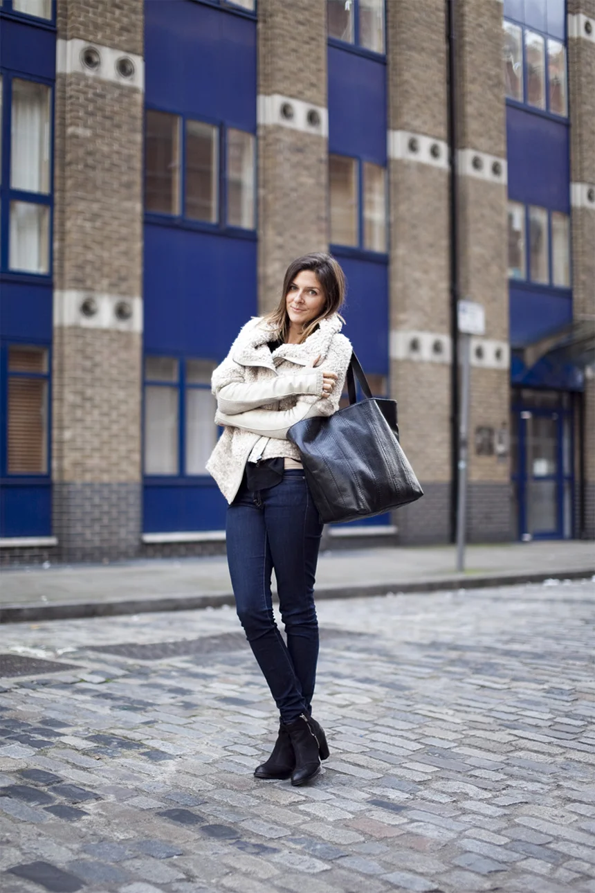 Wearing: DAGMAR jacket (the Shop at Bluebird), Sambag tote, 7 for all Mankind jeans and Topshop Ambush boots.