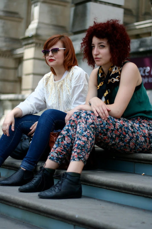 Italian fashion students Francesca and Angelica outside the Victoria & Albert Museum in London.