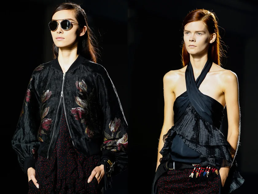 I loved that plain white t-shirts and marl grey sweatshirts were included in the otherwise rich collection. Favourite pieces include the black silk bomber covered in large dark tulips and the sleeveless top with shells lining the neck.