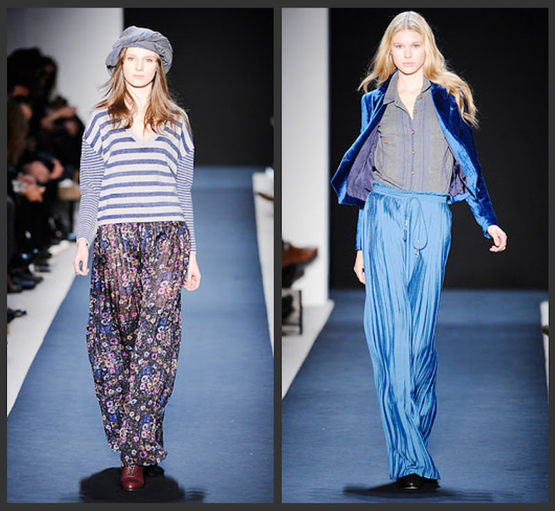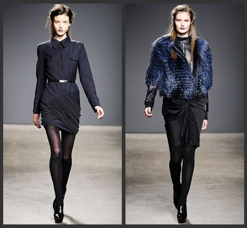 A bit of a love-hate relationship going on here I think. Definitely channeling a younger and more playful vibe than a lot of the other collections... but it felt a bit messy in some parts. They used bright pinks and yellows that looked quite fresh but somehow seriously reminded me of a DKNY spread? I like the mono-chromatic use of colour and the ski inspired jumpers worn with little flouncy skirts. The very supple velvet skirt and jacket pictured below right is by far one of my favourite looks from the show (fingers crossed it filters down to a shop I can afford!). But then they threw in some Latin American-esque samba dancing dresses that looked confused and misplaced... sure the colour fits in with the rest of the collection but the mood just some how didn't. Plus, the menswear was slightly shocking. The models looked completely miserable and all had pointy little hats on that reminded me of that guy from n dubz. Just saying... I can't imagine that is what they were trying to channel there. Anyway, I thought it was alright, and there certainly were some jumpers and dresses I would wear from it, but it didn't seem like New York Fashion Week material...
