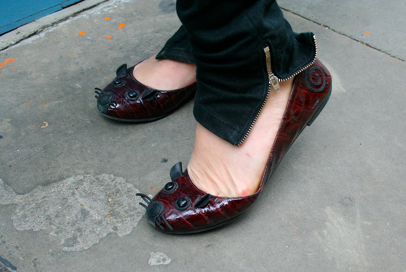 girls, shoes, and obsession seem to be an inescapable combination. the girl wearing these marc jacobs mouse flats said she had fifteen different pairs... fifteen! what is it about shoes that make us totally lose all sense of reality? flats, stilettos, wedges, sneakers, boots, clogs and everything else in between... they have the power to make some of us go totally bonkers.