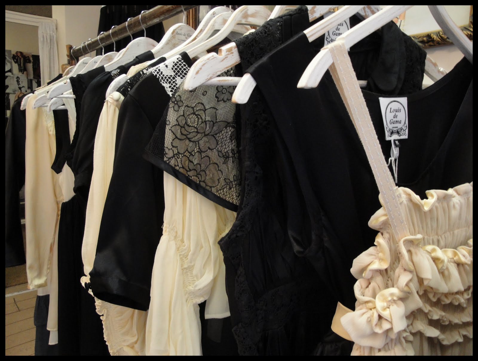 While teetering t0-and-fro the countless amounts of vintage shops in Brick Lane last week I happened to stumble upon this little gem. Entirely unexpected and instantly entrancing, the Louis de Gama boutique sucks you into an alternate world where being draped in gorgeously soft fabrics that have been hand crafted into whimsical masterpieces feels like it should be commonplace. While it fits into the retro-edgy feel of the surrounding shops the craftsmanship of each item clearly towers above any of the neighboring shops that are rammed full of 20quid dresses. Was it alright to touch? Would the oil on my fingers damage the ethereal quality of the items? Would they wither at my mortal touch? Quite the contrary... while each item is hand sewn and unique the prices were shockingly reasonable with items starting off below one-hundred pounds. Not only are the clothes incredibly gorgeous and exactly what I want to be wearing right now but the boutique is utterly transfixing, the sort of place you have difficulty dragging yourself away from.