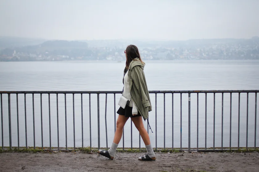 Wearing: Quiksilver coat, Weekday knit, & Other Stories bag, Zara skirt, Mykita glasses and Birkenstocks.