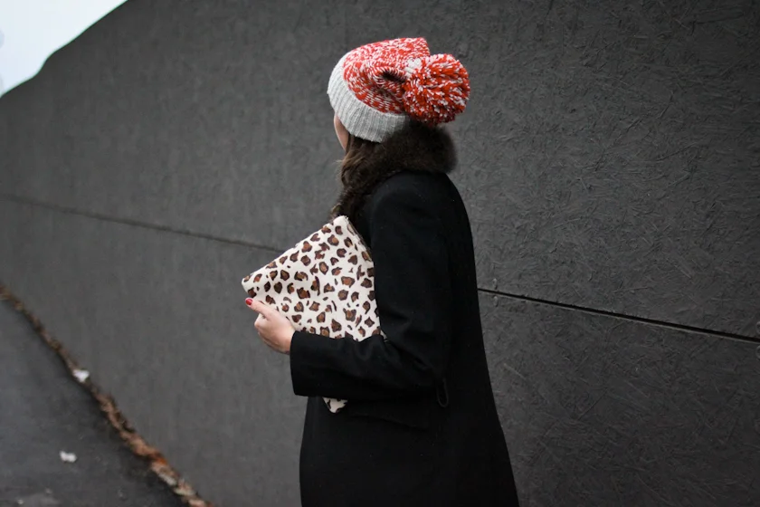 Wearing: Bill Blass coat, Gap hap, Acne jeans, New Balance sneakers, Lilifi clutch, Zara jumper and vintage stole.